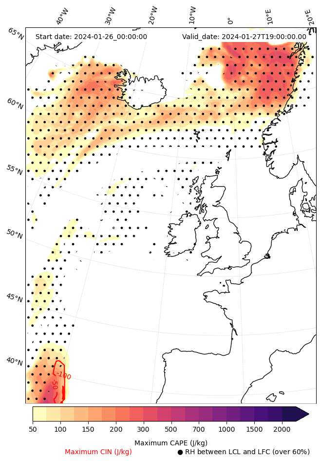 - Maximum CAPE (J/Kg)