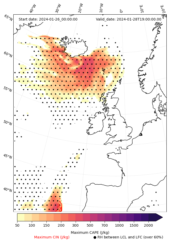 - Maximum CAPE (J/Kg)