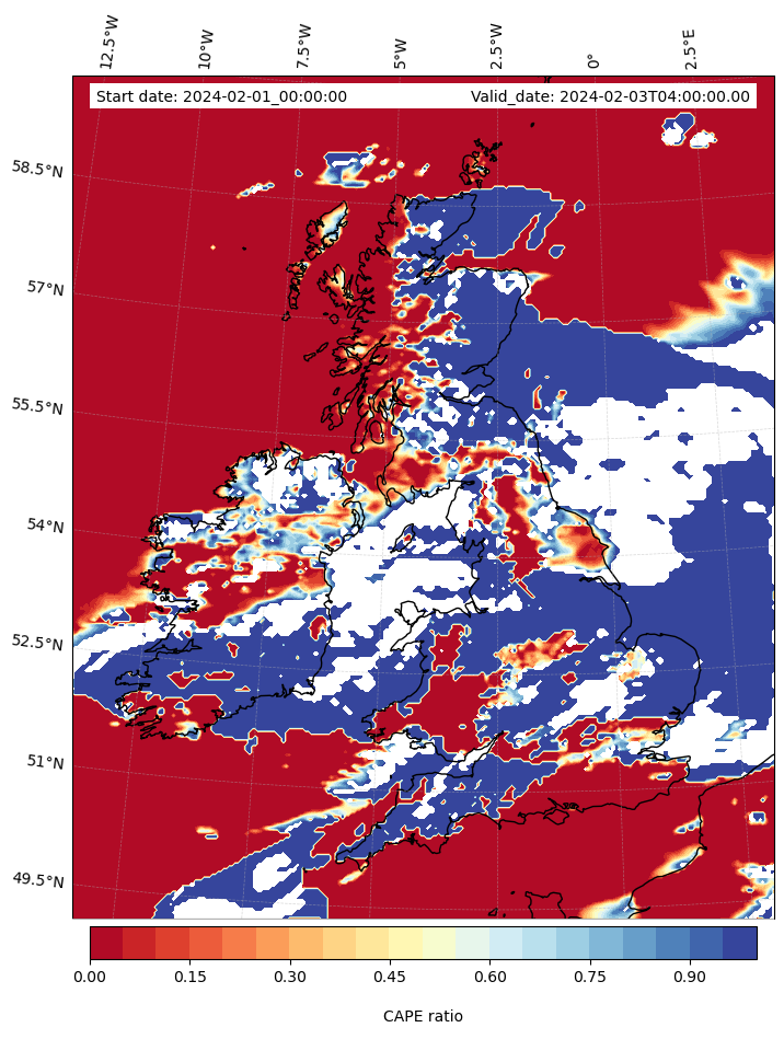 - Maximum CAPE (J/Kg)
