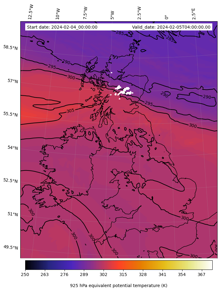 - Equivalent Potential Temperature (K)