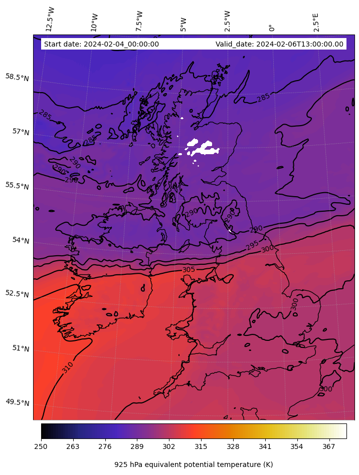 - Equivalent Potential Temperature (K)