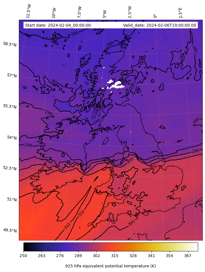 - Equivalent Potential Temperature (K)