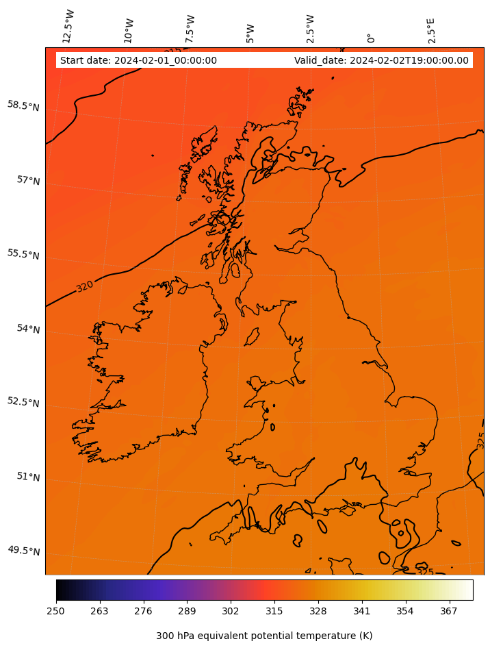 - Equivalent Potential Temperature (K)