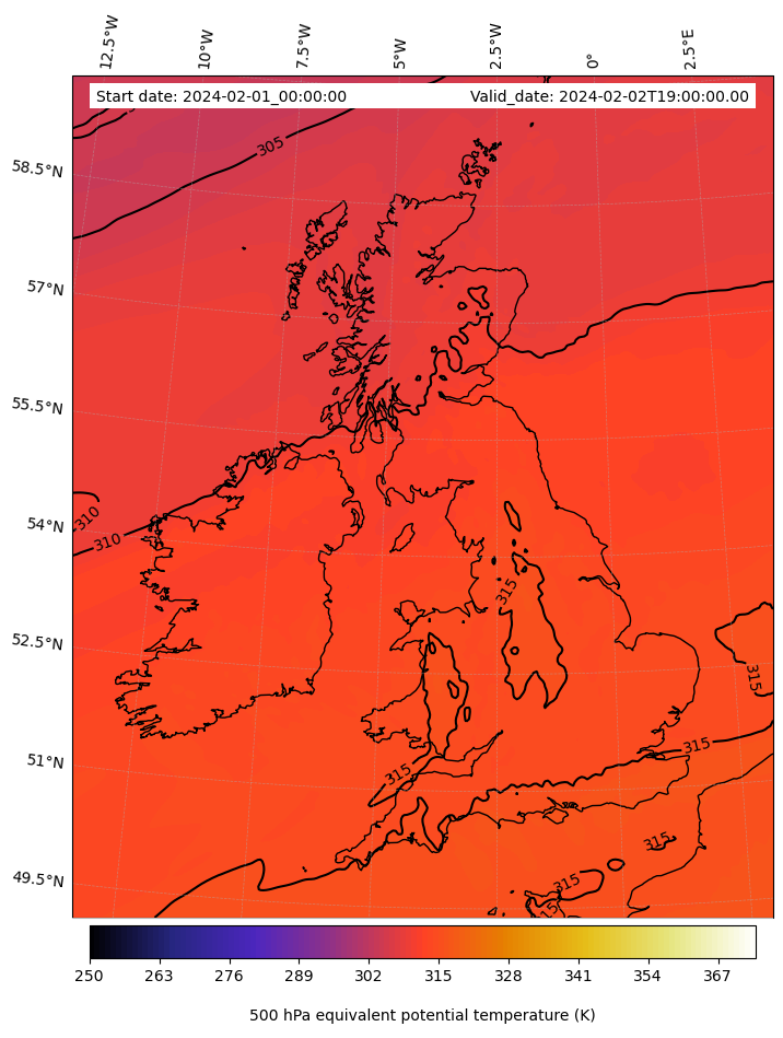 - Equivalent Potential Temperature (K)