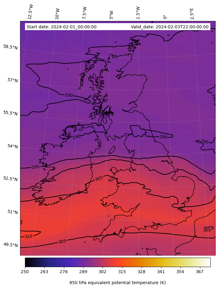 - Equivalent Potential Temperature (K)
