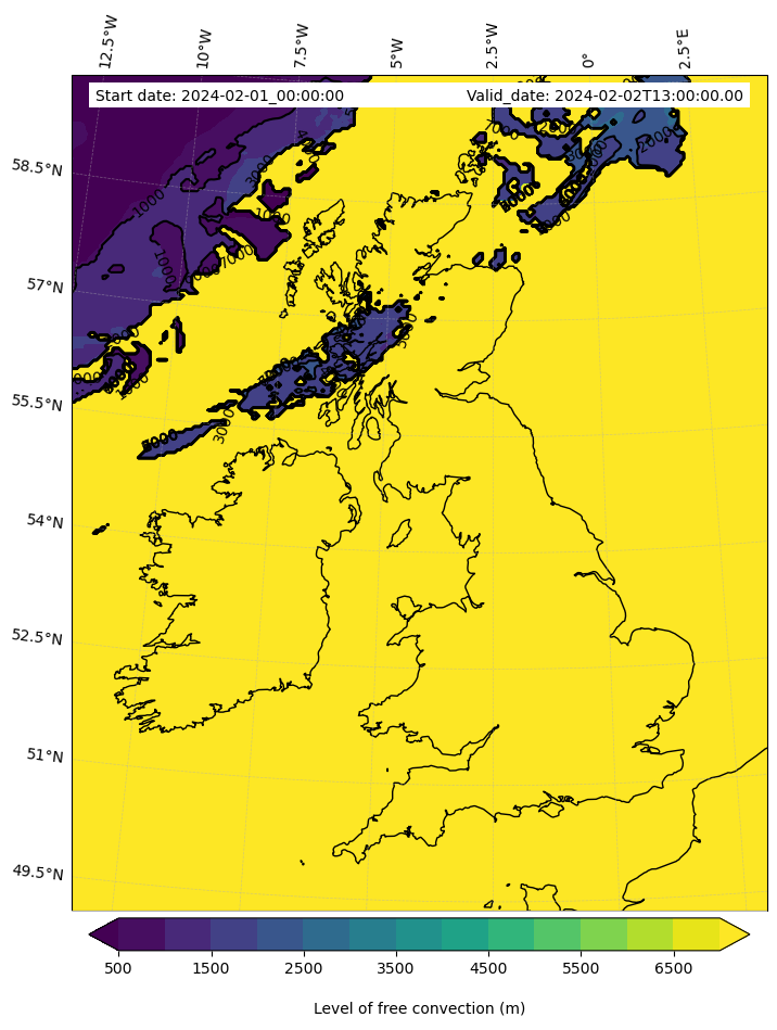 • Level of free convection (m)