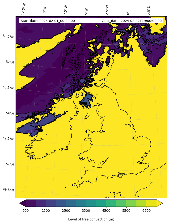 • Level of free convection (m)