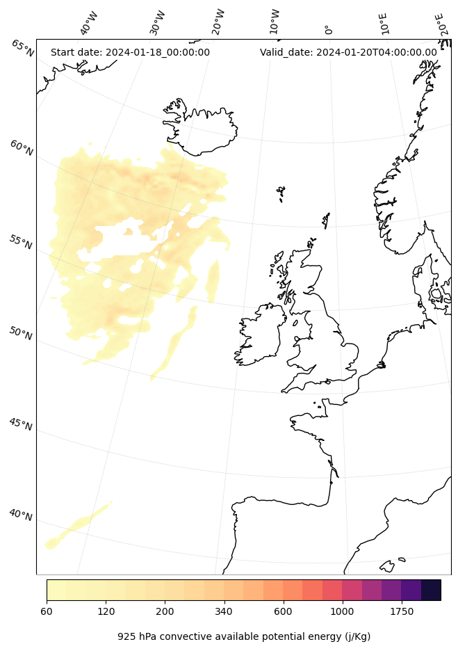 - Maximum CAPE (J/Kg)