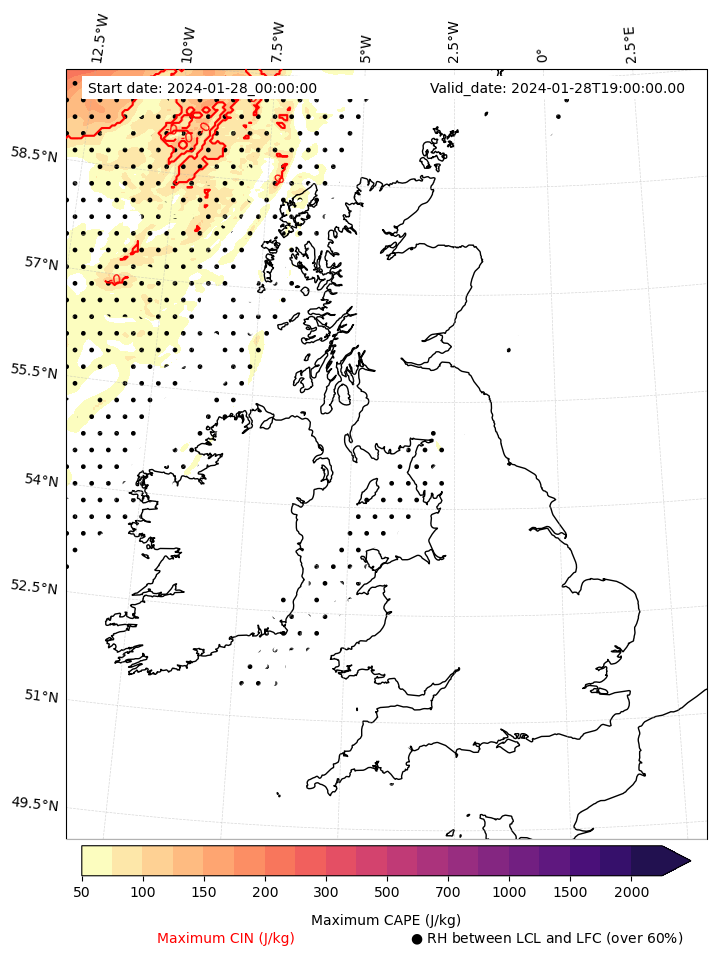 - Maximum CAPE (J/Kg)