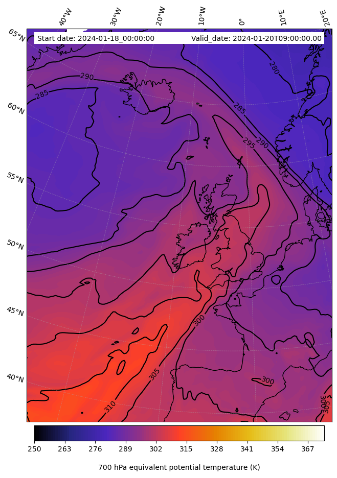 - Equivalent Potential Temperature (K)