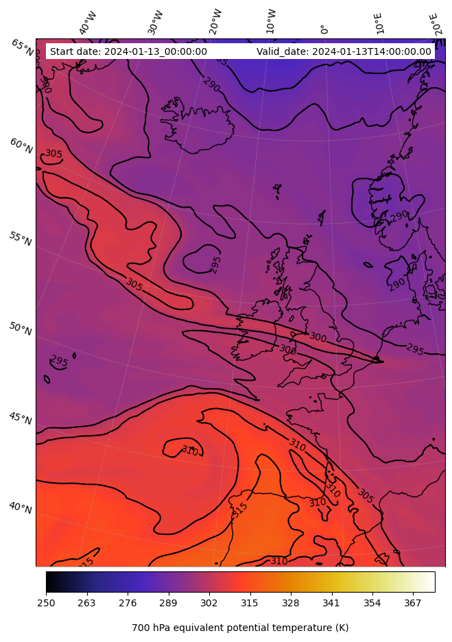 - Equivalent Potential Temperature (K)