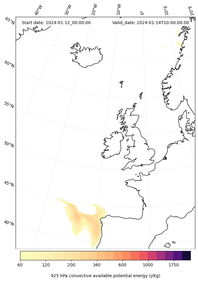 - Maximum CAPE (J/Kg)
