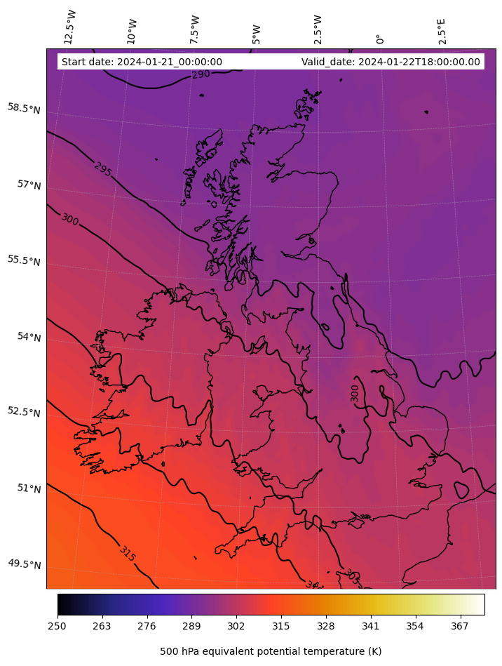 - Equivalent Potential Temperature (K)