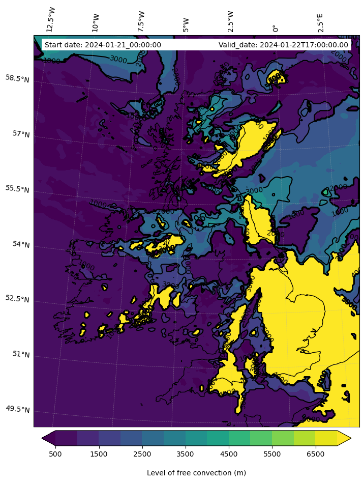 - Level of free convection (m)