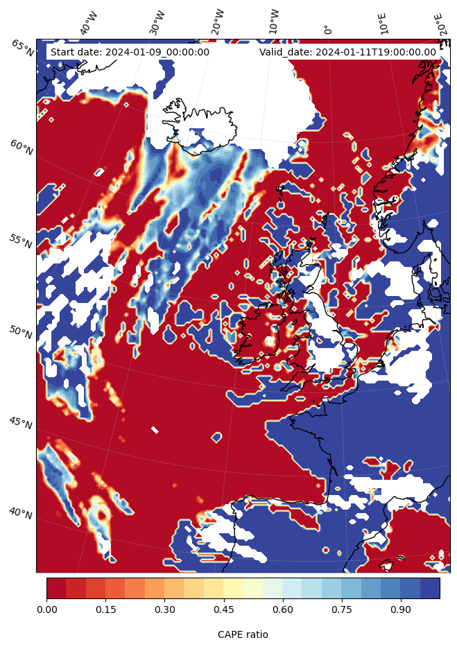 - Maximum CAPE (J/Kg)