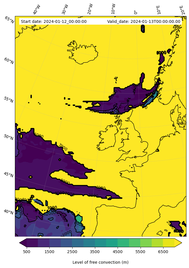 - Level of free convection (m)