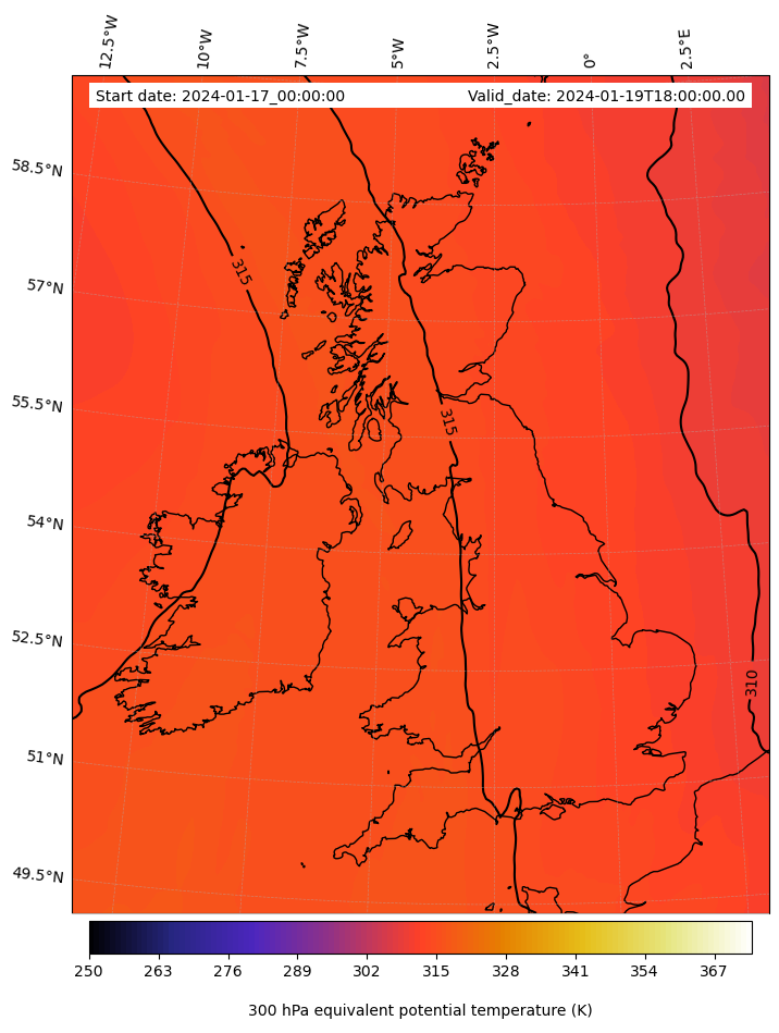 - Equivalent Potential Temperature (K)