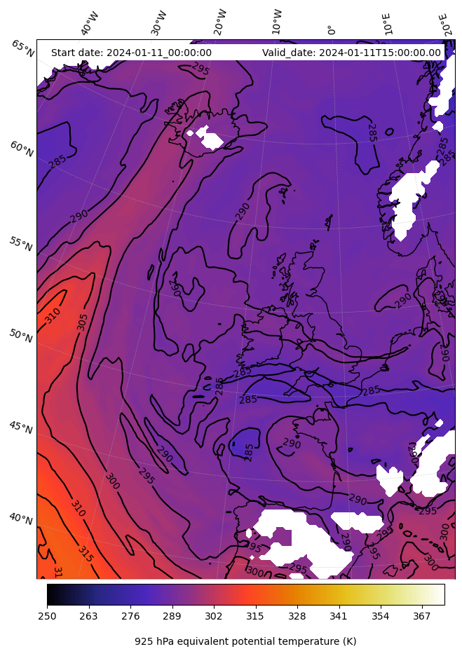 - Equivalent Potential Temperature (K)
