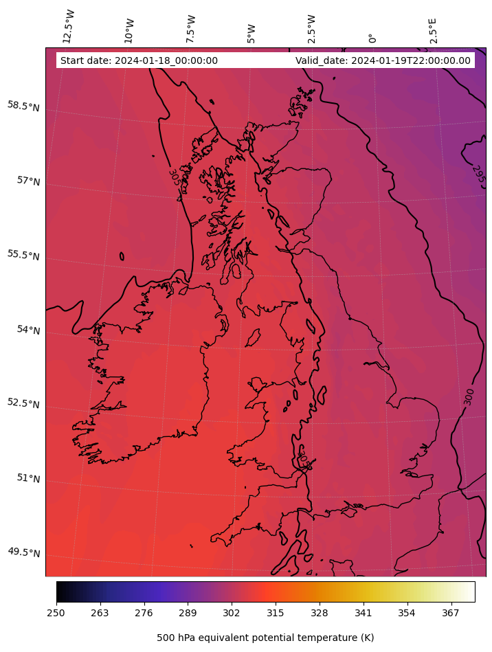 - Equivalent Potential Temperature (K)