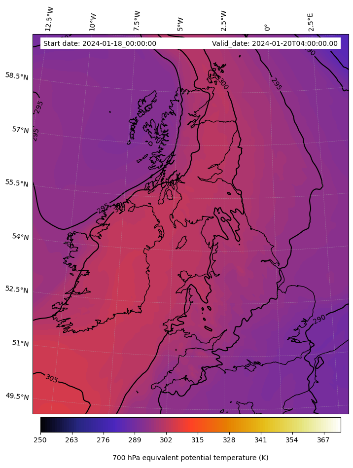 - Equivalent Potential Temperature (K)