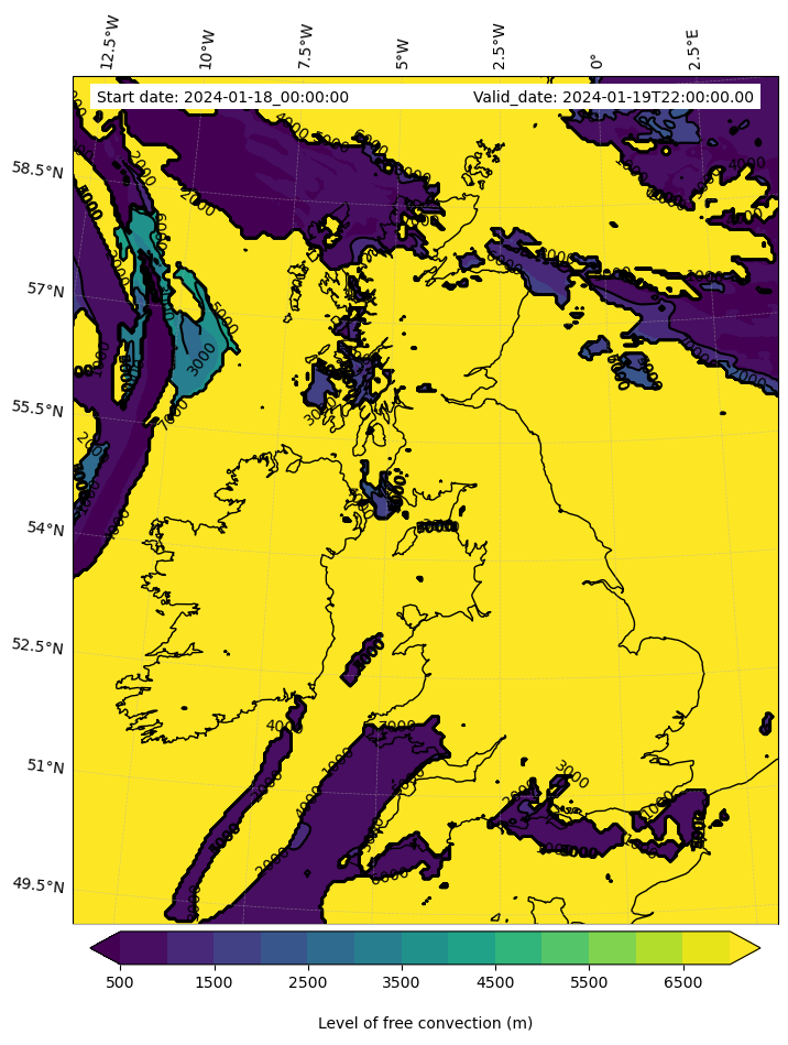 - Level of free convection (m)