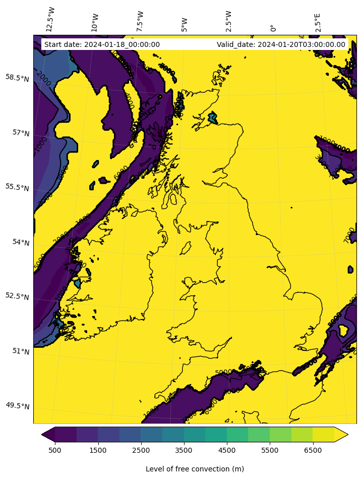 - Level of free convection (m)