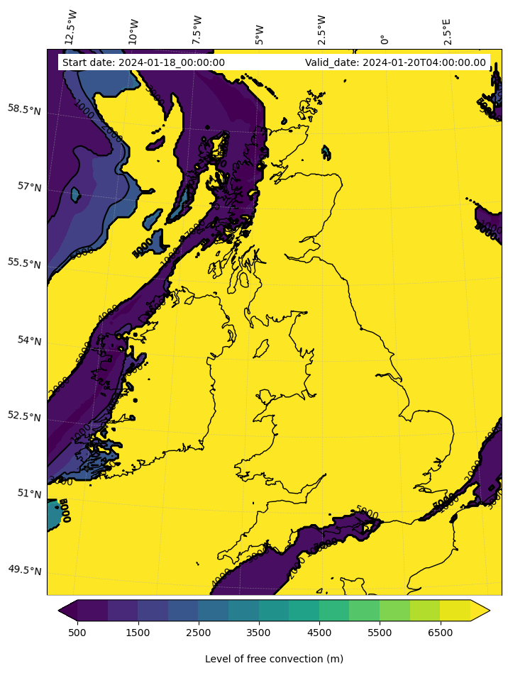 - Level of free convection (m)