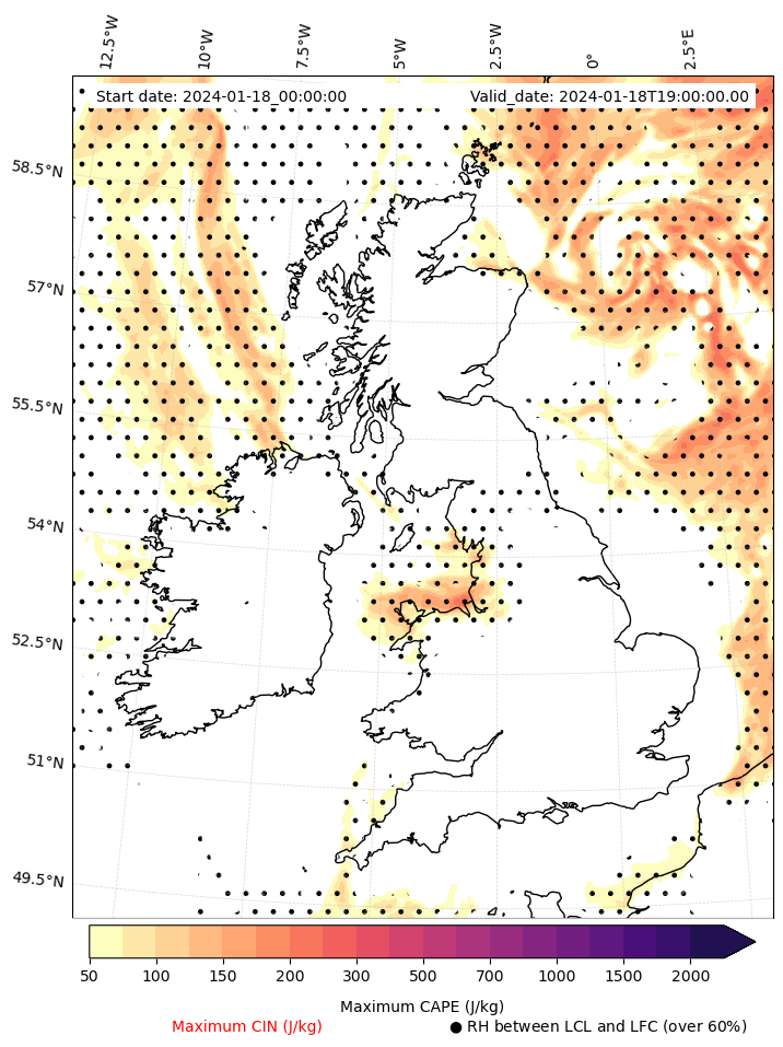 - Maximum CAPE (J/Kg)