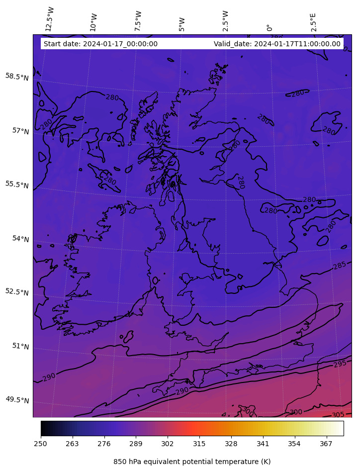 - Equivalent Potential Temperature (K)