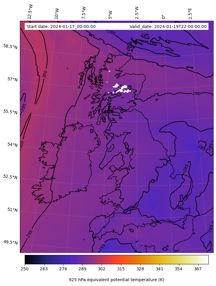 - Equivalent Potential Temperature (K)