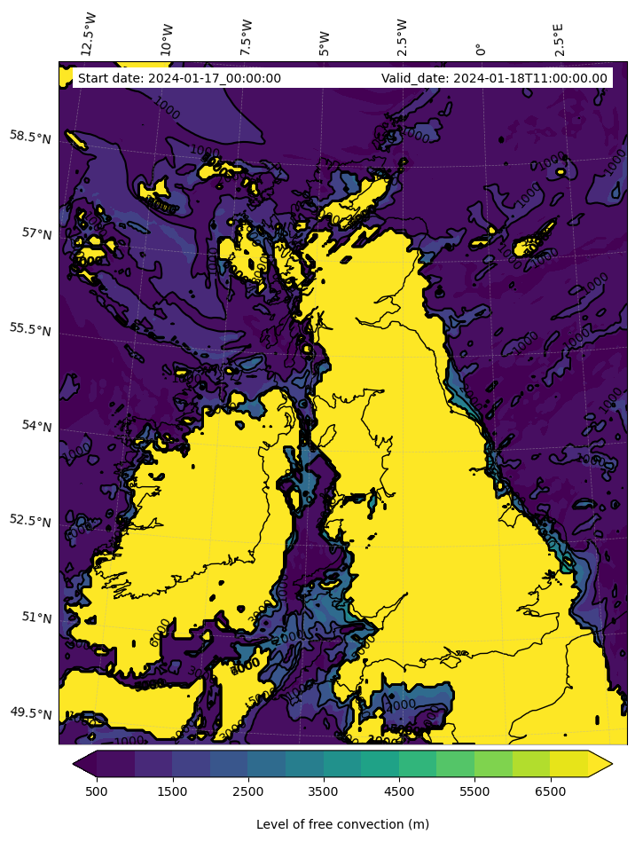 - Level of free convection (m)