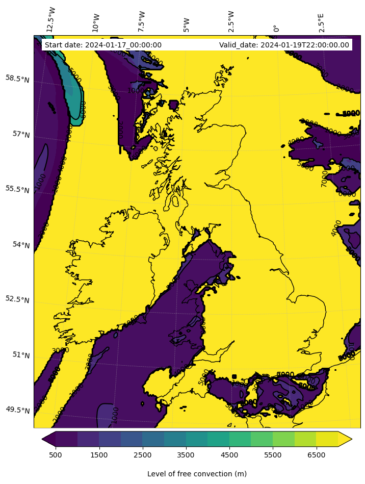 - Level of free convection (m)