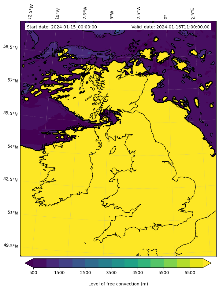 - Level of free convection (m)