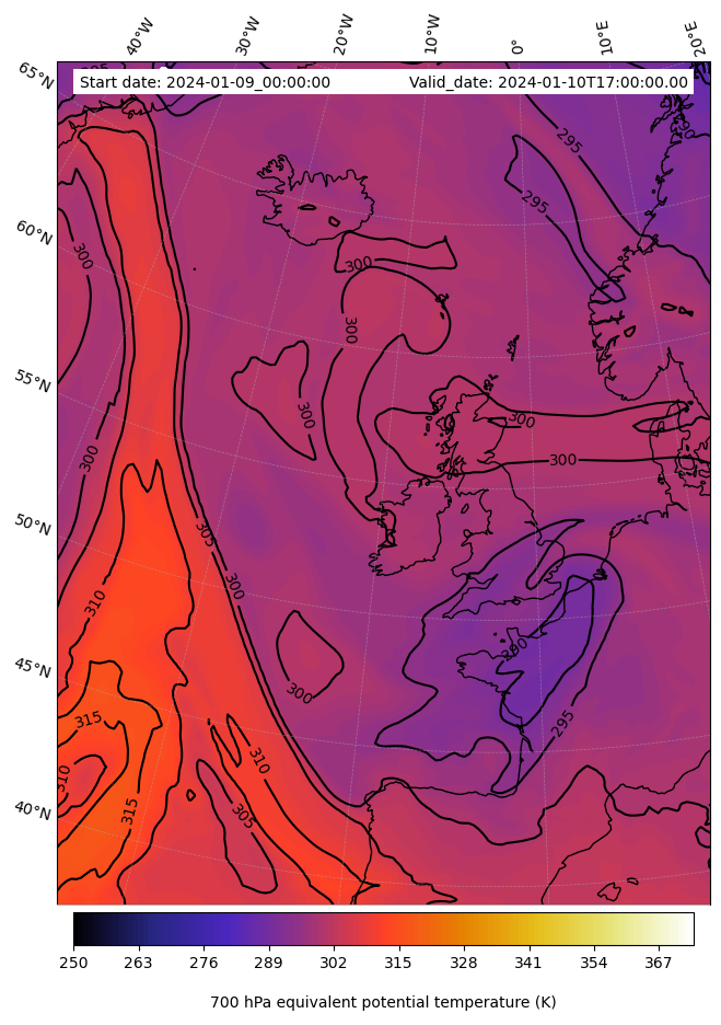 - Equivalent Potential Temperature (K)