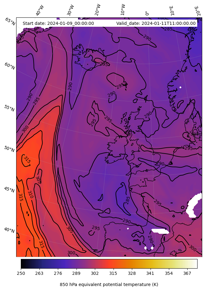 - Equivalent Potential Temperature (K)