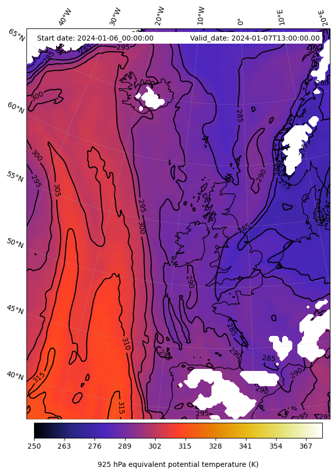 - Equivalent Potential Temperature (K)