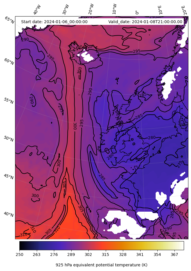 - Equivalent Potential Temperature (K)