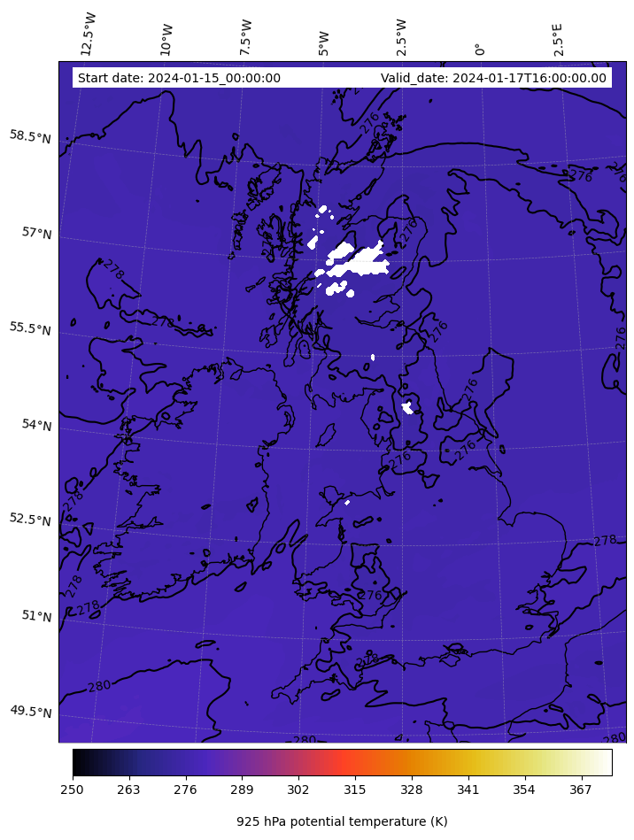 - Equivalent Potential Temperature (K)