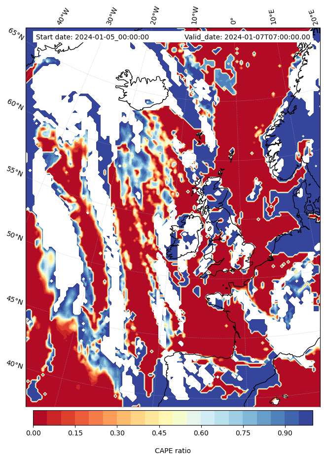 - Maximum CAPE (J/Kg)