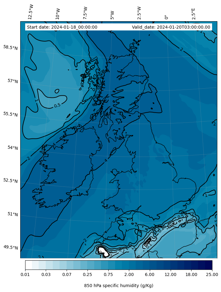 - Water vapor mixing ratio (g kg¯¹)