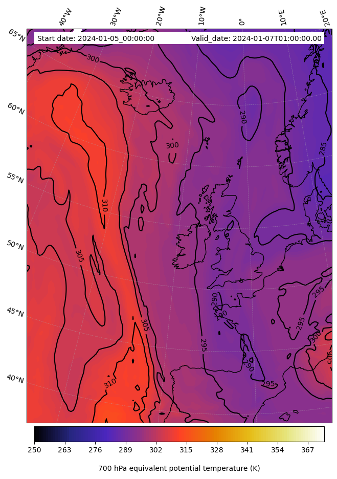- Equivalent Potential Temperature (K)