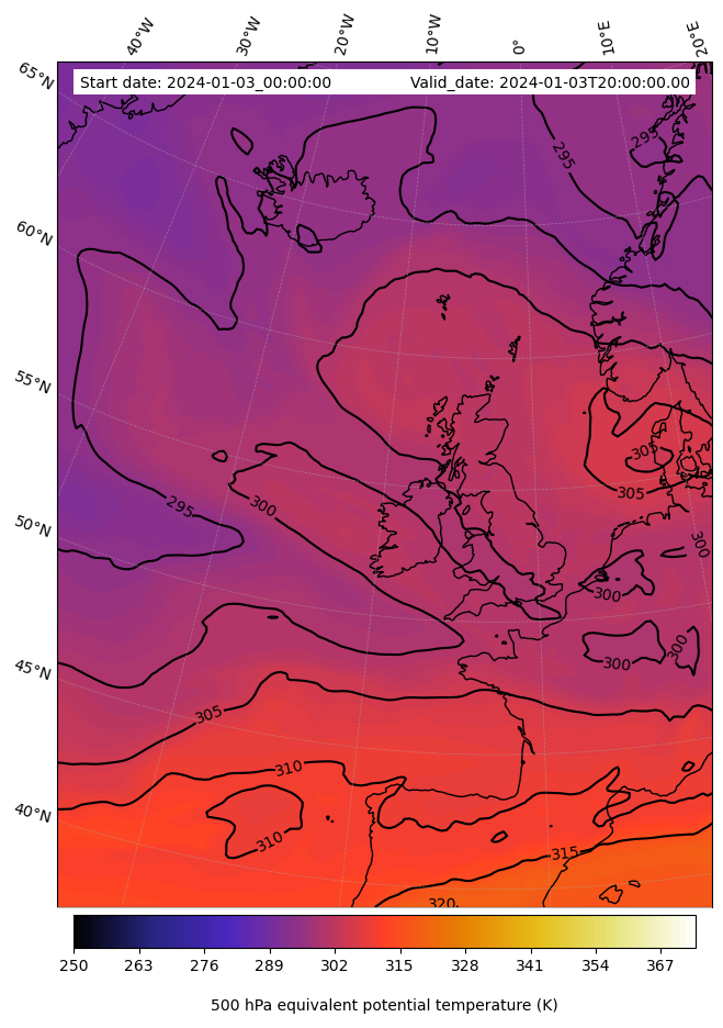 - Equivalent Potential Temperature (K)