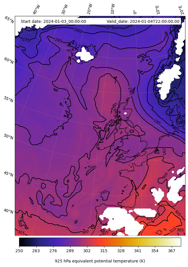 - Equivalent Potential Temperature (K)