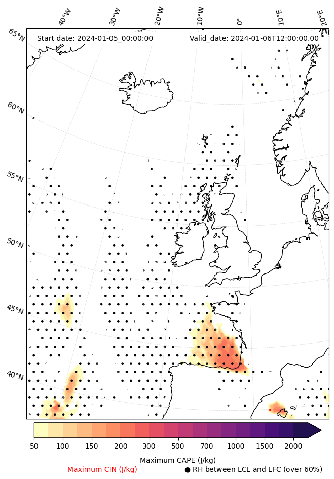 - Maximum CAPE (J/Kg)