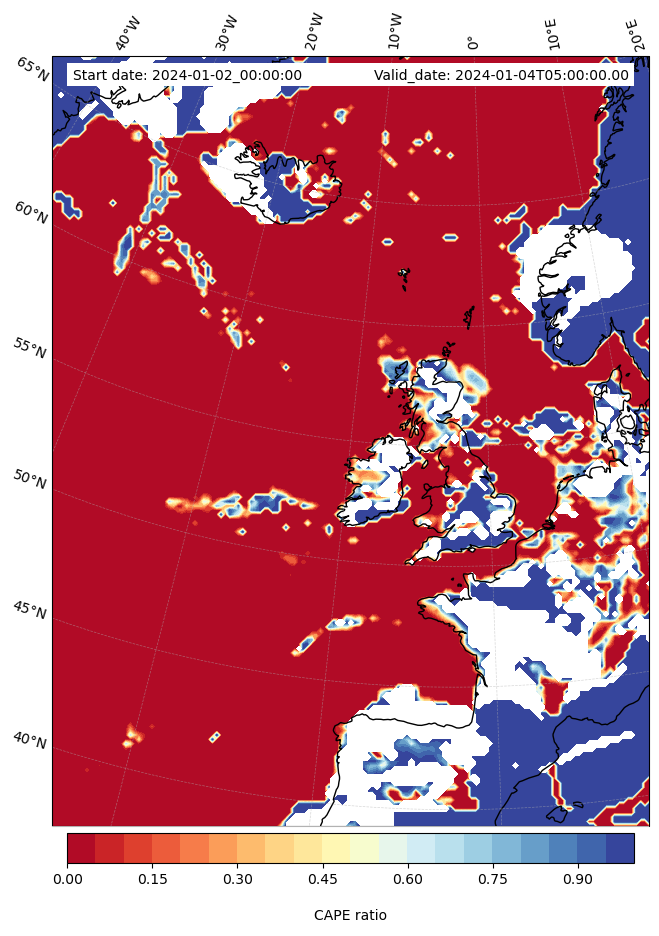 - Maximum CAPE (J/Kg)