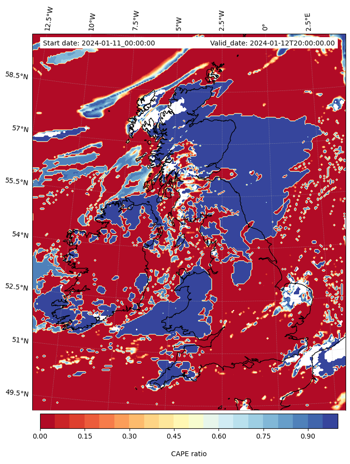- Maximum CAPE (J/Kg)