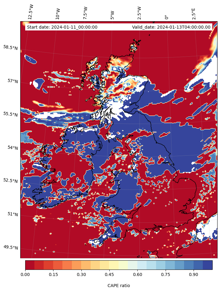 - Maximum CAPE (J/Kg)