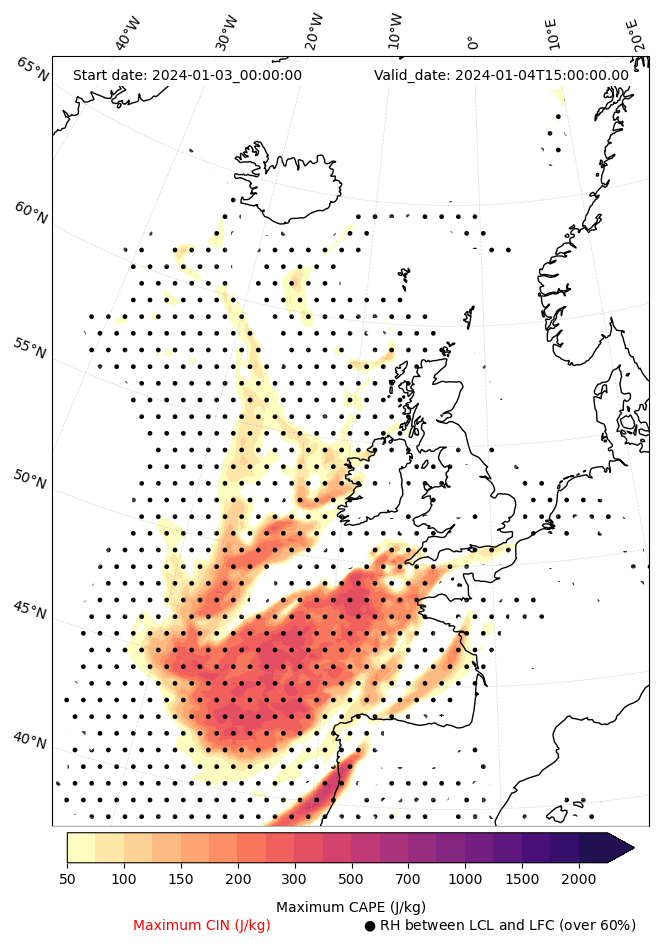 - Maximum CAPE (J/Kg)
