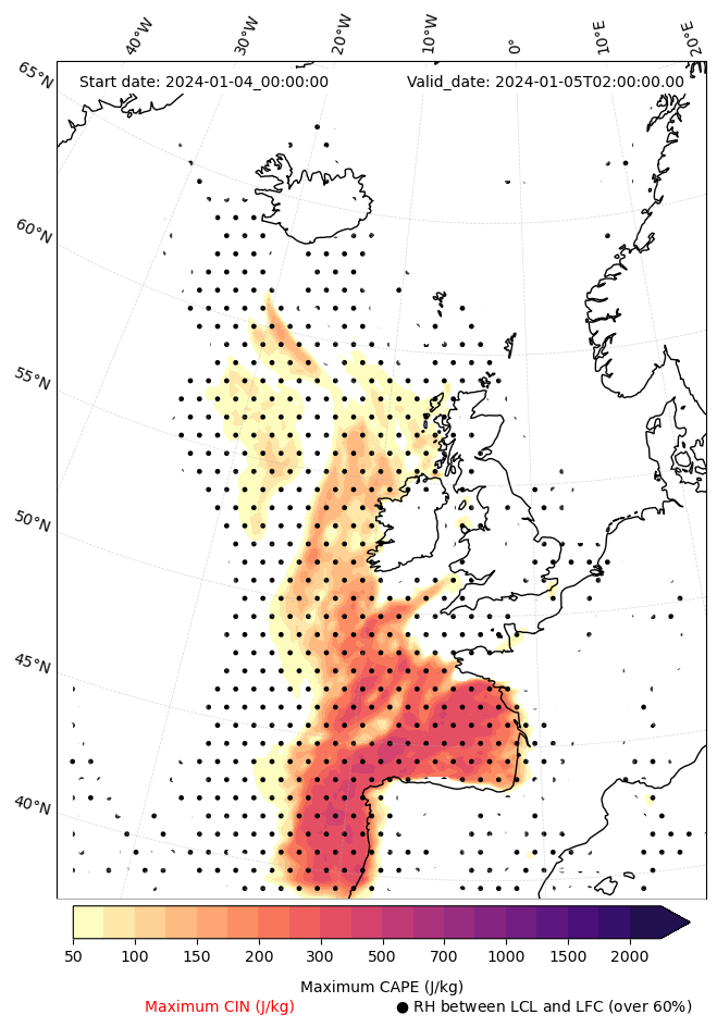 - Maximum CAPE (J/Kg)