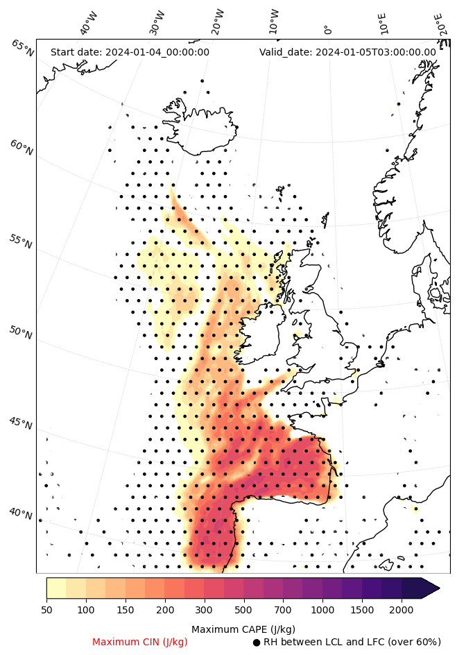 - Maximum CAPE (J/Kg)